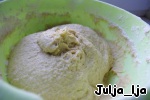 Вымешиваем тесто руками или миксером до гладкого состояния. Тесто должно быть мягким, но упругим. Месить нужно не меньше 10 минут. Оставляем тесто подходить, накрыв полотенцем.