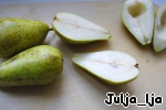 Груши моем, разрезаем пополам и вынимаем сердцевинку.