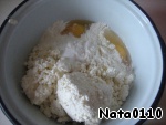 Сшиваем творог, муку, соль, сахар, соду, замешивает тесто и в холодильник.