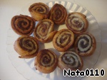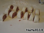 Тесто раскатываем, начинку намазываем, сворачиваем в рулет и нарезаем 1-1,5 см, немного приплюскиваем и жарим на маленьком огне до золотистого цвета.