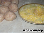 Из фарша скатать шарики и обвалять в панировочных сухарях.