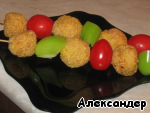 Надеть на шпажки с овощами.