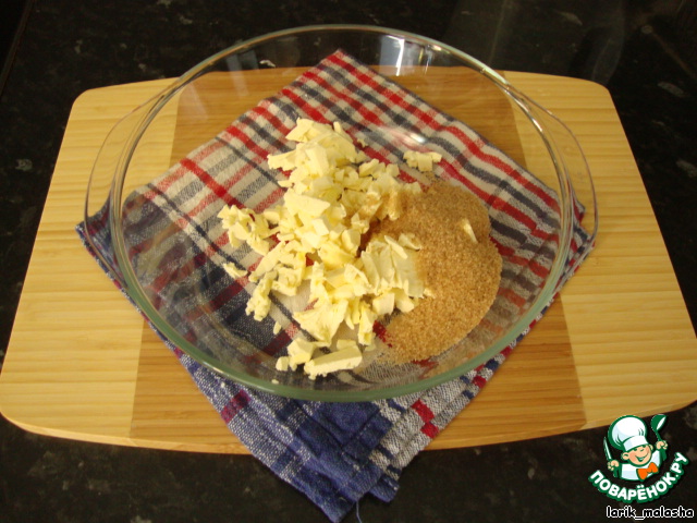 Соединить сливочное масло (мягкое) и коричневый сахар.