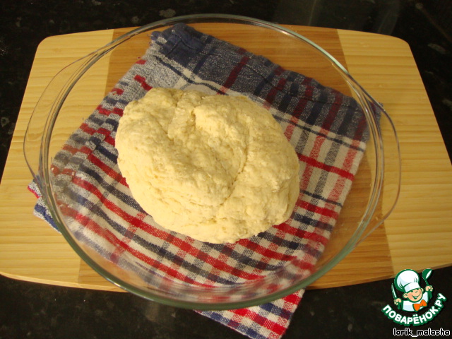 Замесить тесто, оно достаточно мягкое, поставить его в холодильник на время приготовления начинки.