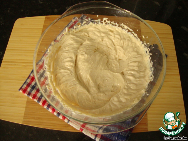 Добавить ванилин, крахмал, взбить миксером до однородной массы. У меня творог был домашний, достаточно мягкий. Если у вас зернистый творог, то можно его протереть через сито, чтобы не было комочков, и разбавить сметаной.
