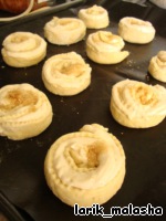 Выложить ватрушки на противень, застеленный бумагой для выпечки.