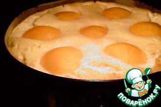 Достаем наш пирог из духовки, выливаем на него заливку и отправляем в духовку еще на 30-40 минут, при этом уменьшив температуру до 150 градусов.