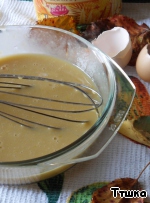 Пока пирог стоит в духовке, в остывший карамельно-сливочный сироп добавим 2 яйца, хорошо перемешаем.