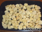Картофель очистить (если он молодой, то можно просто тщательно промыть; у меня картофель молодой, но я все равно его очистил, т.к. не очень люблю с кожурой). Порезать на небольшие кусочки (у меня картофель совсем мелкий, поэтому резал на половинки или три части). Смазать противень оливковым маслом, выложить картофель, снова сбрызнуть оливковым маслом, немного посолить, орегано по вкусу. Запекать в духовке до готовности (у меня при температуре 180 градусов картофель приготовился за 20 минут).