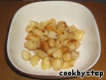 Стручковую фасоль отварить в кипящей подсоленной воде до готовности (у меня фасоль замороженная, и на варку ушло около 7 минут). Фасоль откинуть на дуршлаг, чтобы стекла лишняя жидкость и фасоль немного остыла. Остывшую стручковую фасоль добавить к картофелю.