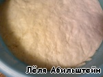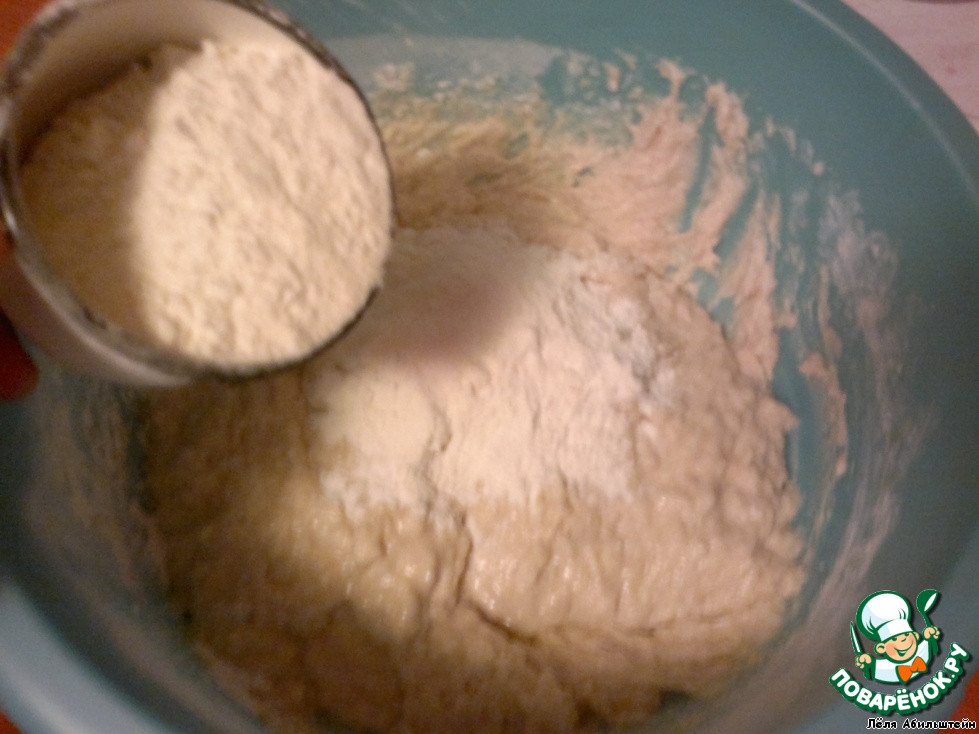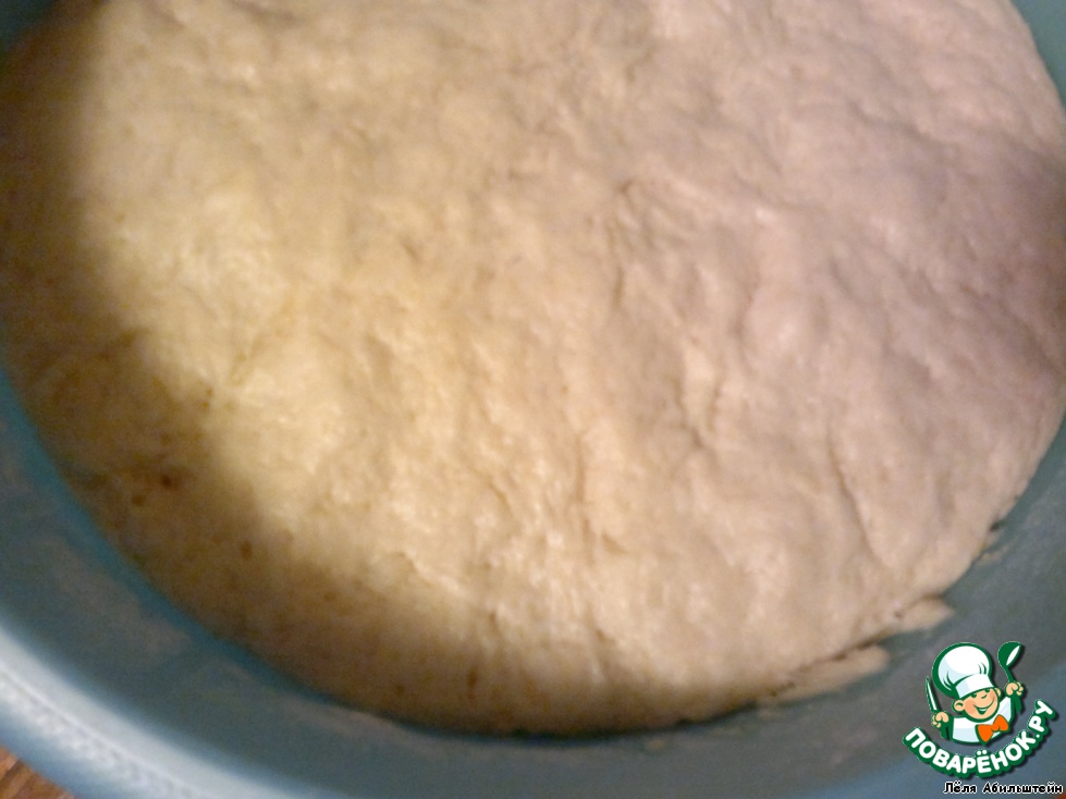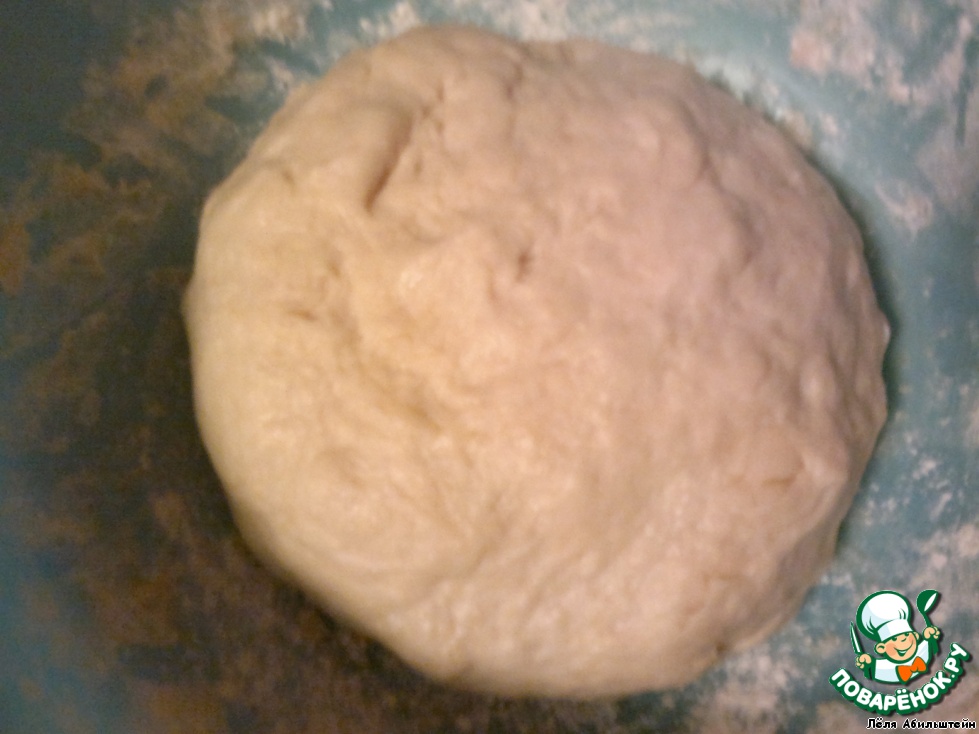 Замешиваем не очень крутое тесто. Муки может понадобиться немного больше, чем я указала, зависит от сорта муки. Накрываем тесто и даем ему подойти.