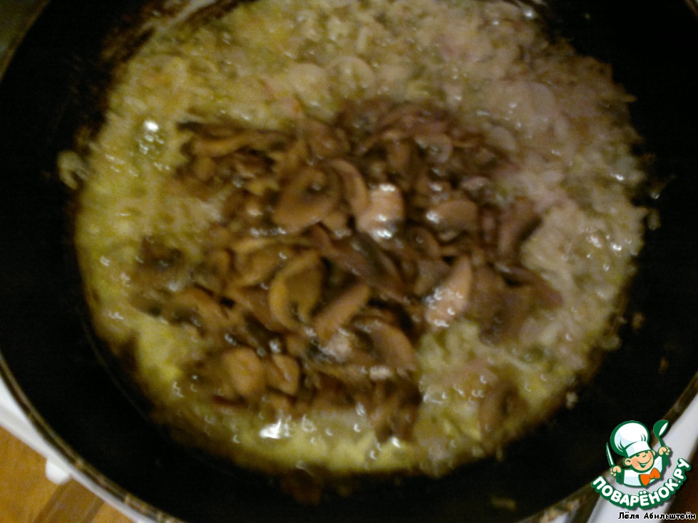 Добавляем шампиньоны, жарим 2-3 минутки.