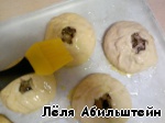 Смазываем яичком наши "гнездышки". Ставим их в разогретую духовку и выпекаем при 200 градусах до светло-коричневого цвета (примерно 25 мин).