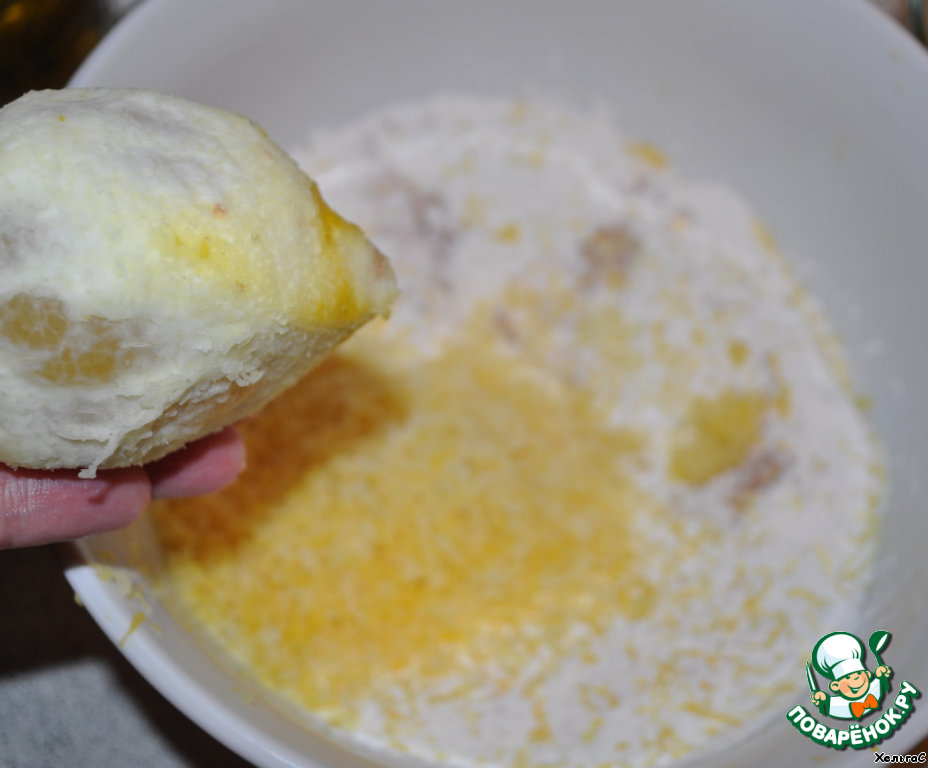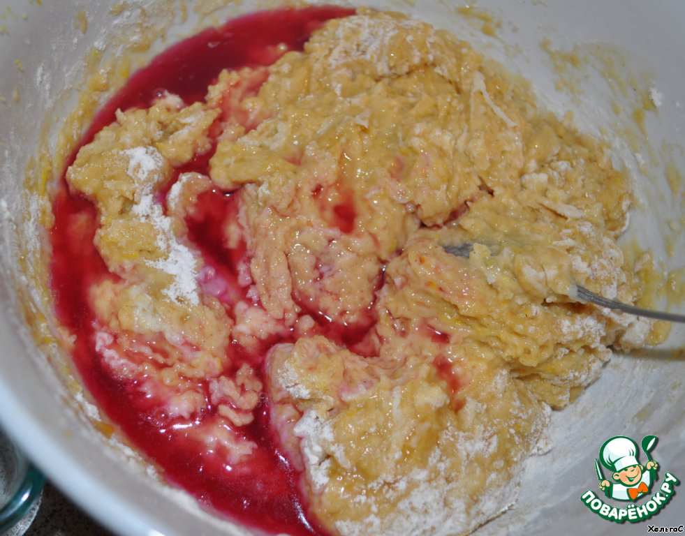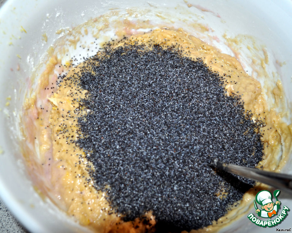 Цедру от целого лимона добавим в муку и соединим с яичной сладостью