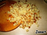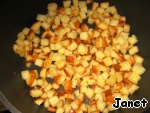 Растопить сливочное масло, немного добавить подсолнечного, всыпать кубики батона и быстро перемешать.