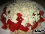 Затем помидоры, крупно, чтобы меньше вытекал сок из них