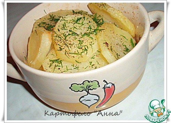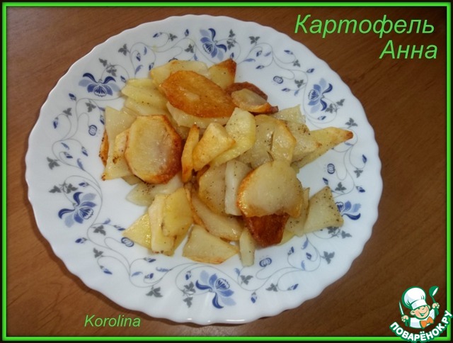 Pommes "Anna". Классический рецепт французской кухни. Это блюдо было придумано в 1870 году французским шеф-поваром известного парижского ресторана Адольфом Дюглере (Adolphe Duglere). Название блюду было дано в честь известной куртизанки Анны Делион (Anna Deslions). Для приготовления этого наивкуснейшего блюда понадобятся всего 2 главных ингредиента - картофель и сливочное масло. А какой вкус! Нежный картофель внутри, хрустящая корочка снаружи. Масло придает блюду сливочный вкус, оно карамелизуется и образует аппетитную корочку.