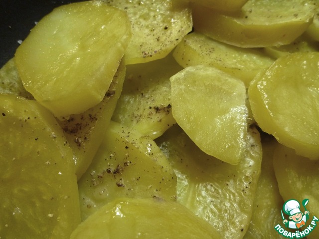 Затем выложить второй слой, посолить, поперчить и так далее, пока не заполним форму.