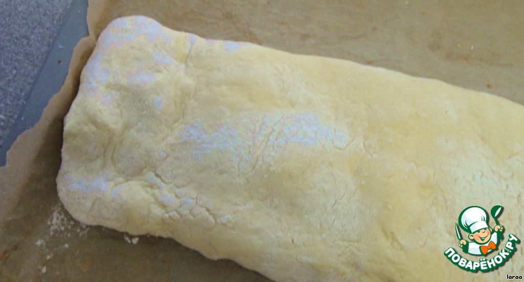 Тесто раскатать примерно 40 Х 20 см. Яйцо немного взболтать и смазать поверхность теста.