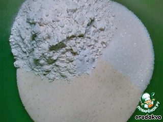 Сухие ингредиенты (сахар, мука, манка, сода) высыпать в миску и перемешать.