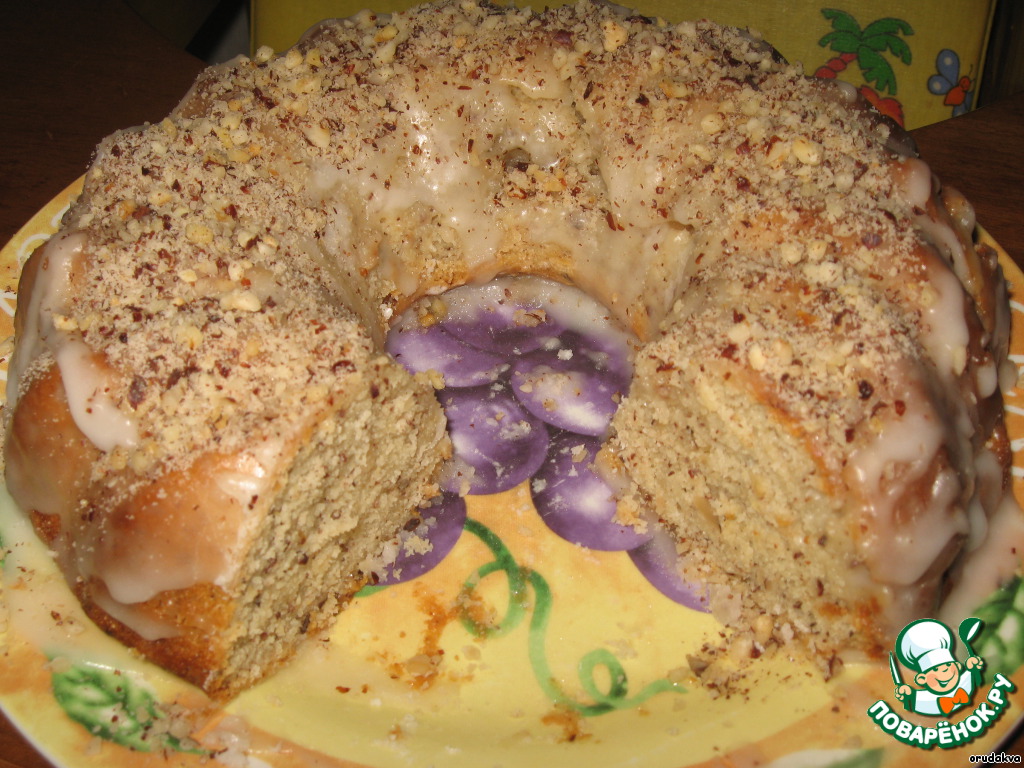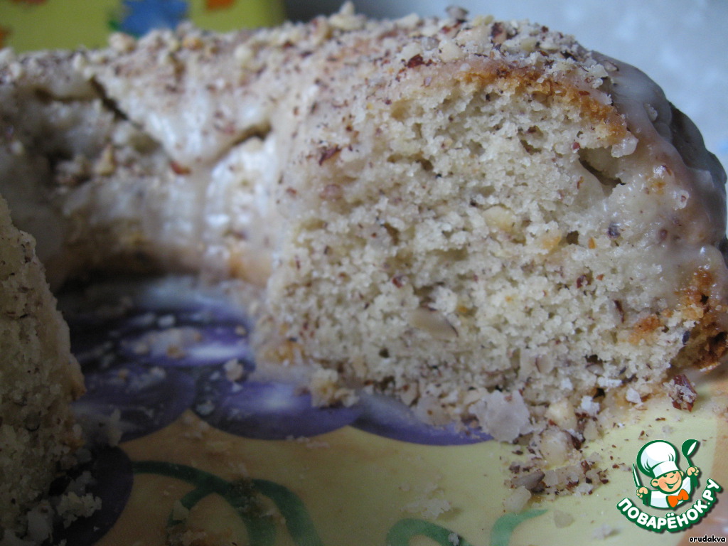 Остывший кекс можно посыпать сахарной пудрой или полить глазурью: сах.пудру перемешать с тёплой водой, разогреть на плите где-то до 40-50 гр. Полить сверху кекс.
