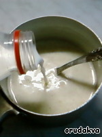 Поставить на плиту и на умеренном огне, при постоянном помешивании, довести до кипения.
