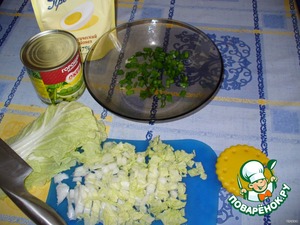 • Лук и китайскую (пекинскую) капусту нарезать.