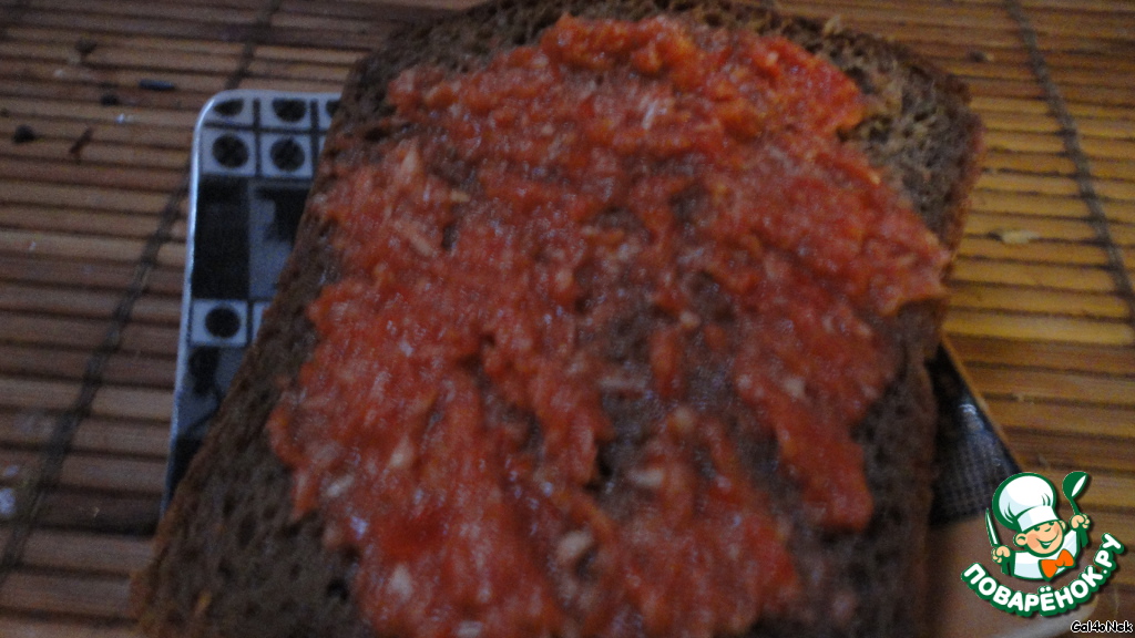 Кушаем с салом, холодцом, мяском. Ну или просто с хлебушком. У меня толще намазать не получилось - слишком "ядерно" выходит.