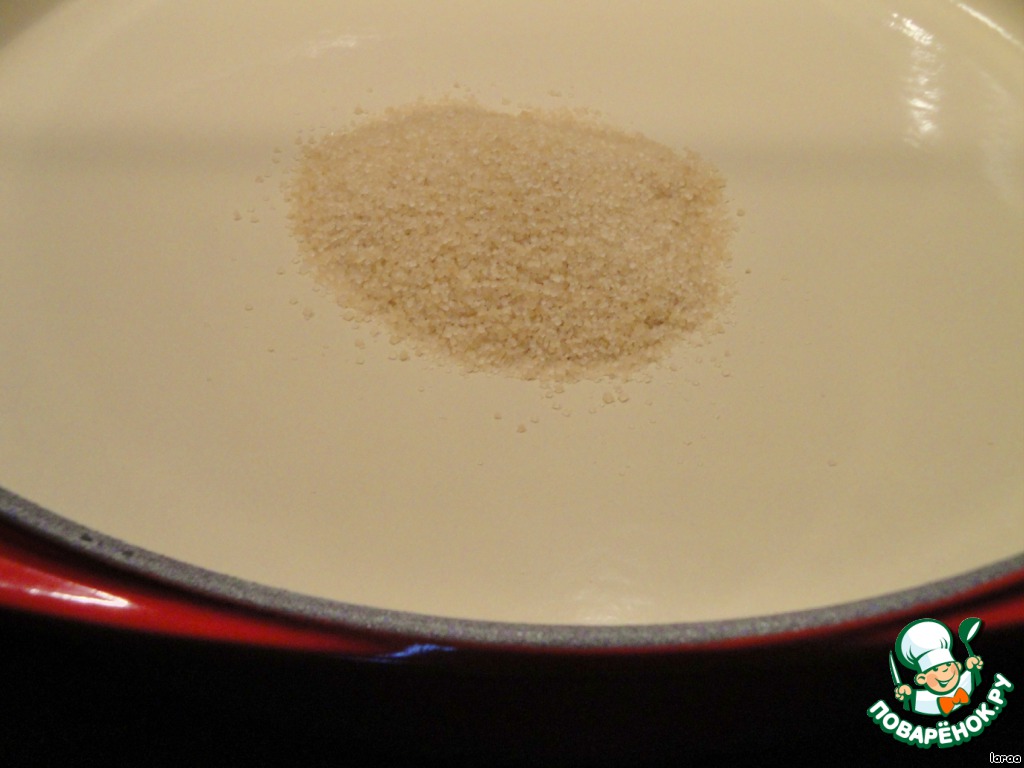 В сковороду, в которой будете выпекать, насыпать коричневый сахар. И на среднем огне дать немного растаять.