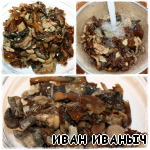Грибки. У Елены Ивановны в рецепте про них много сказано, но, увы, хоть пора и грибная, а не оказалось свежих. Взял смесь из морозилки прошлогоднюю.