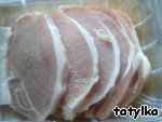 Мясо нарезаем на порционные куски толщиной примерно 1 см.