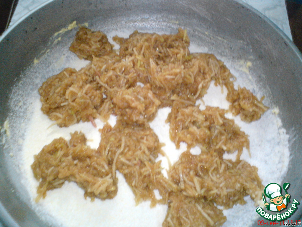 Натрите их на терке (на комбайне быстрее), смешайте с половиной нормы сахарной пудры.