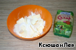 Муку высыпать в удобную емкость и нарезать в нее ломтиками холодное сливочное масло.