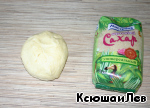 Вымесить тесто. Оно должно быть мягким, лучше не усердствовать и вымешивать недолго. Тесто завернуть в пищевую пленку и убрать в холодильник на полчаса.