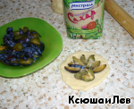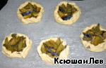 Сформировать коржики: раскатать лепешку, красиво выложить начинку из слив, сверху посыпать коричневым сахаром, подобрать края.