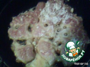 Выложить обвалянные кусочки на сковородку, предварительно разогретую и сбрызнутую маслом для жарки