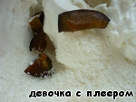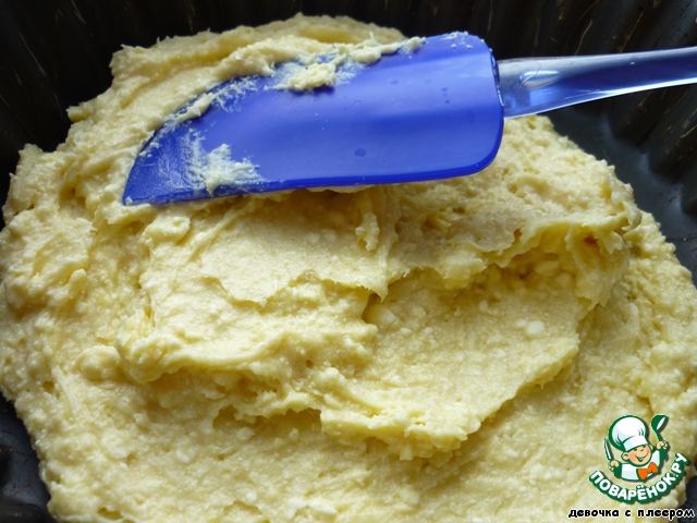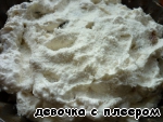 Нанести белково-фруктовую массу на тесто, присыпать кокосовой стружкой и поставить пирог в разогретую до 180 градусов духовку минут на 40. |