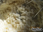 Займемся творогом. Хорошенько растереть творог с сахаром, если творог зернистый, его лучше перекрутить через мясорубку или пробить блендером, если творог не жирный, добавьте сливочное масло (на 1 кг творога 100 г масла). На 1 кг творога я брала полстакана сахара, я не люблю, когда очень сладко, если любите послаще - кладите стакан.