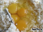 Добавить яйца, крахмал (делала как с кукурузным, так и с картофельным, разницы почти нет, с картофельным структура чуть плотнее), хорошо перемешать, взбивать не надо.