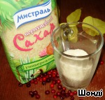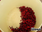 Вымыть бруснику, откинуть на сито. Перемешать с коричневым сахаром.