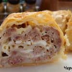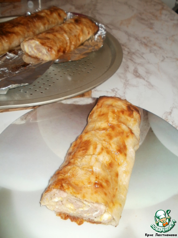Теперь список моих "регулярных" блюд пополнился еще одним! Очень быстро и очень вкусно. И большое поле для фантазии, ведь начинку можно положить любую! Я часто готовила раньше похожий рулет, но без лаваша. Клала внутрь и кукурзку, и стрючковую фасоль... Но с лавашом проще, красивее и вкуснее! я готовила с индюшатиной, внутрь положила омлет с луком (каюсь, хотела сварить яйца, но по дороге из магазина разбила их) и болгарский перец. Получилось супер! И горячим вкусно есть, и холодный на бутерброд класть. Муж доволен