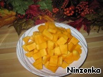 Если есть тыквенное пюре, то можно использовать его. Я делала из свежей тыквы. Для начала ее нужно почистить и нарезать.