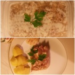 В последнее время в ресторанах и кафе совершенно невозможно кушать холодец. На мой вкус - это просто вареное мясо в бульончике. А Вы пробовали настоящий деревенский холодец - наваристый, ароматный, с насыщенным вкусом? Он варится только из деревенского мяса и субпродуктов. Из мяса, купленного в супермаркете, Вы никогда не приготовите это вкуснейшее блюдо (особенно, если там продается мясо из стратегических запасов где-нибудь 1976 года одной из стран третьего мира). По предлагаемому мной рецепту холодец всегда готовила моя бабуля, всю жизнь прожившая в деревне. Вкуснее него никогда я не пробовала холодца, пока не применила метод бабули и не научилась готовить это блюдо сама.