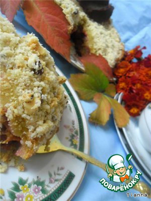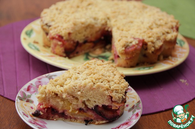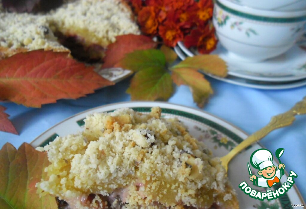 Сверху распределить оставшееся тесто и посыпать ореховым штрейзелем. Поставить форму в разогретую до 180 С духовку на 45-50 минут.