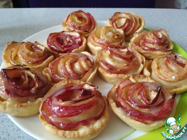 Рецепт «Яблочные тарталетки "Карамельные цветы"»:
