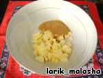 Холодное масло нарезать мелкими кубиками, добавить коричневый сахар.
