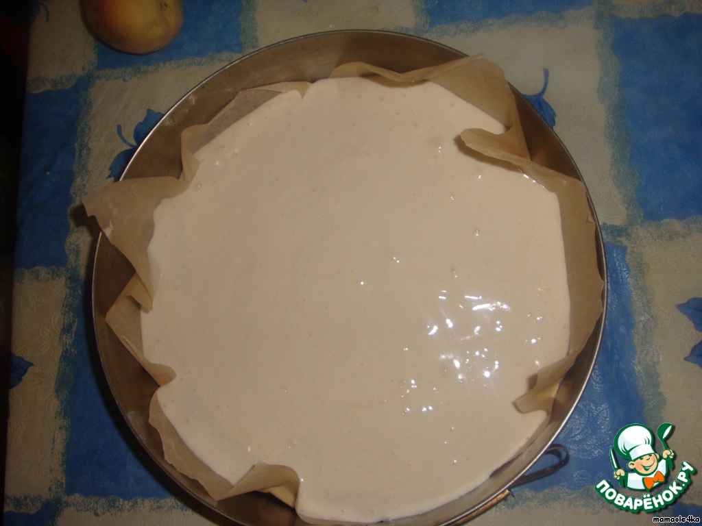 • Тесто выложить в форму. Дно формы застелить пергаментом. Поставить выпекатся в духовке при температуре 200 С на 45 минут.