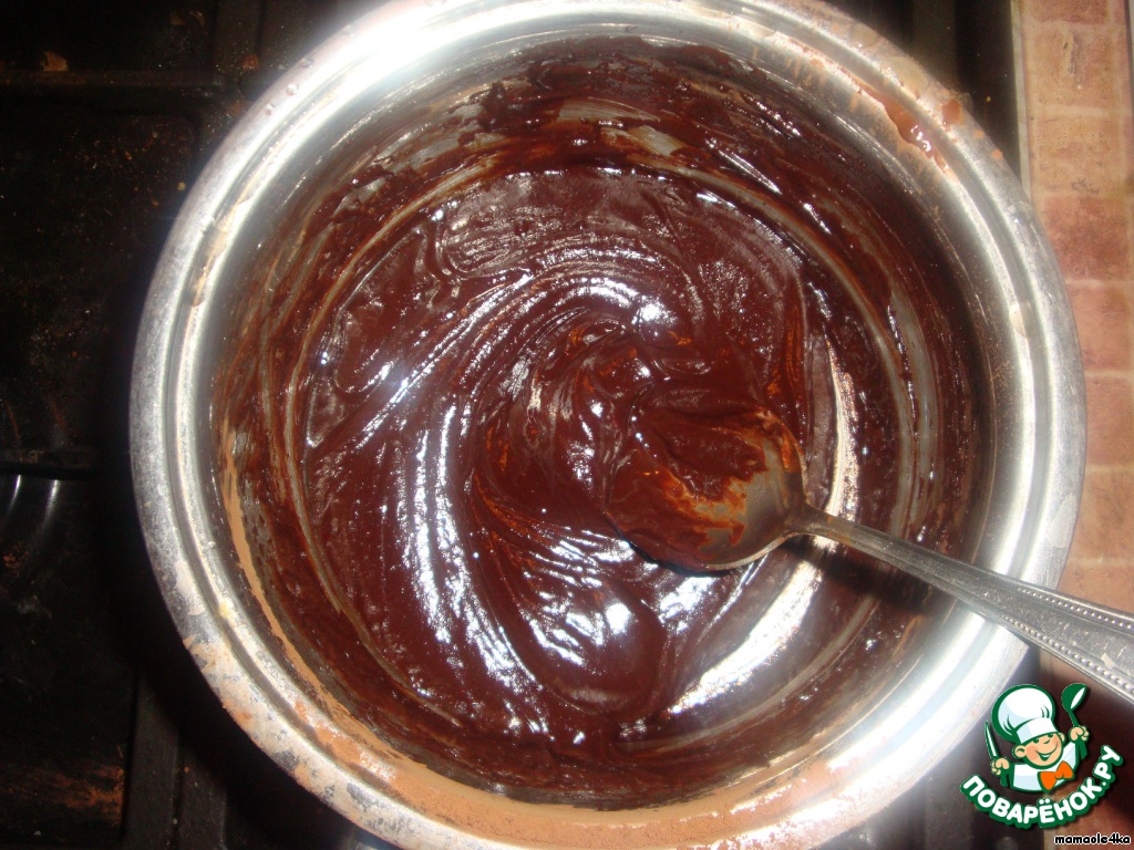 • Готовим шоколадную глазурь. В кастрюльку всыпаем: сахар, сметану и какао-порошок. Ставим на маленький огонь. Готовим минут 5. В конце добавляем сливочное масло. Оно придаст нежность глазури.
