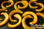 Поставить в разогретую до 200 С духовку на 20-25 минут, тыква должна стать мягкой.