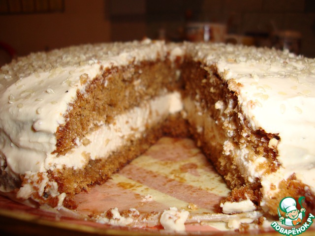 Этот торт кофейно-кунжутно-творожный. Придумала я его вчера, делала из того, что было. Результат впечатлил, очень вкусно!